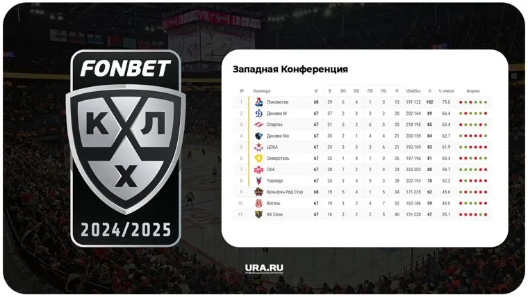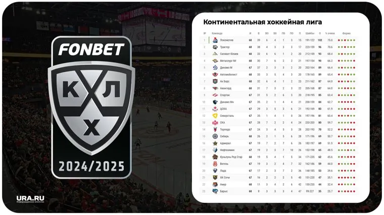 Турнирная таблица КХЛ сезона 2024/2025: общее положение