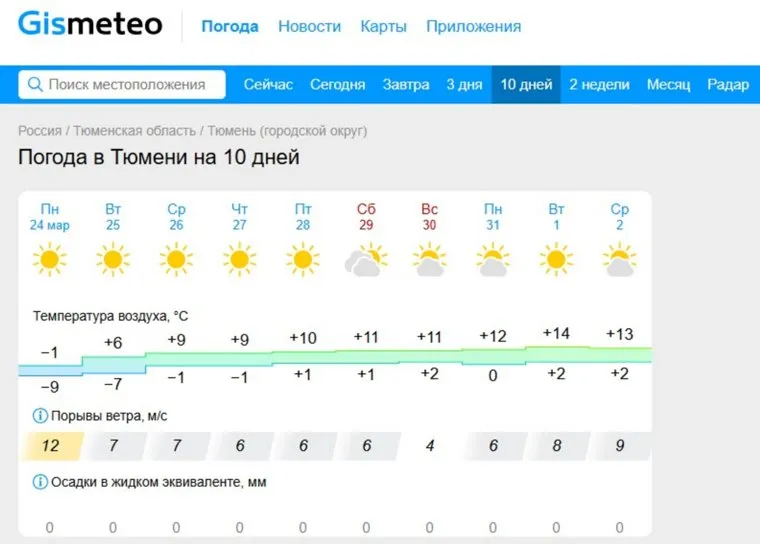 «В течение следующих семи дней температура воздуха будет постепенно повышаться. Она достигнет пика в 14 градуса Цельсия ко вторнику, 1 апреля, после чего вновь начнет немного снижаться», — прогнозирует ресурс.
