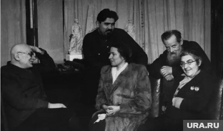Агния Барто (в центре) и Павел Бажов (справа). Перед Бажовым писательница Мариэтта Шагинян