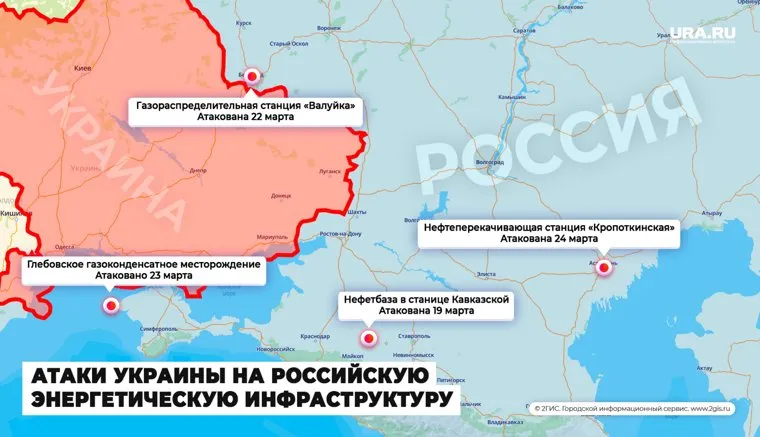 Российское военное ведомство также сообщило о том, что украинские войска предприняли попытку атаки на нефтеперекачивающую станцию «Кропоткинская», принадлежащую Каспийскому трубопроводному консорциуму (КТК) в Кубани. Инцидент произошел примерно в два часа ночи 24 марта.