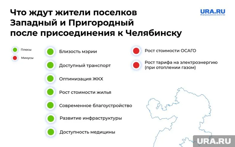 Присоединение поселков Западный и Пригородный к Челябинску — это важный шаг, который изменит жизнь местных жителей. Соответствующее решение принято депутатами Сосновского района и на заседании депутатов городской думы Челябинска 25 марта. Изменение статуса сельской территории на городскую влечет за собой ряд существенных перемен. Плюсы и минусы процесса читайте в материале URA.RU.