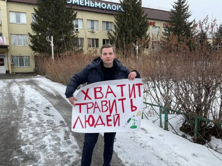 Новый руководитель молодежного крыла тюменской ЛДПР Артем Валгушкин с плакатом «Хватит травить людей» вышел на пикет против руководства молочного завода, где обнаружили сметану с антибиотиком. Об акции сообщили в группе VK «Молодежь ЛДПР в Тюменской области».