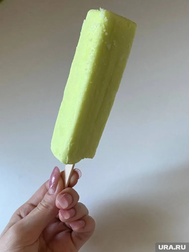 Далее на пробу взяли эскимо со вкусом дыни. Само мороженое имеет светло-зеленый оттенок — краситель очевиден. Приторный аромат действительно заставляет попробовать эскимо, однако понимание, что это ароматизаторы, перебивает желание.
