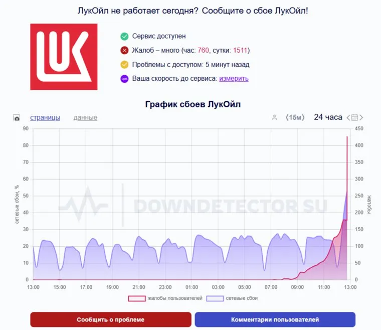 Проблемы с доступом также подтверждаются данными сервиса Downdetector. Работники компании сообщают, что в офисах на Сретенском бульваре, Якиманке и Покровском бульваре парализована работа, и охрана вынуждена вручную проверять данные сотрудников для допуска в здание, пишет telegram-канал Shot. Кроме того, клиенты автозаправочных станций не могут расплатиться картами.