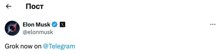 Американский предприниматель Илон Маск подтвердил, что в мессенджере Telegram появится нейросеть Grok. Об этом он сообщил на своем аккаунте в соцсети Х.