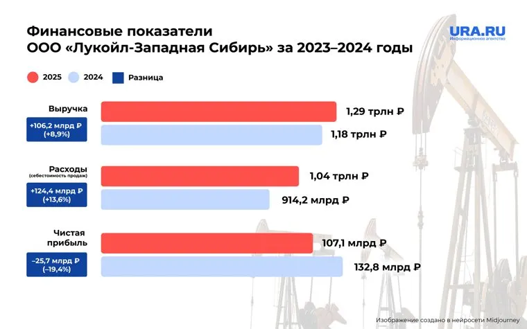 Чистая прибыль крупнейшего дочернего предприятия компании «Лукойл» в ХМАО — ООО «Лукойл-Западная Сибирь» — за 2024 год сократилась на 25,7 млрд рублей. Согласно бухгалтерской отчетности, поданной в налоговую службу, она составила 107,1 миллиардов рублей, в то время как годом ранее показатель был равен 132,8 млрд рублей.