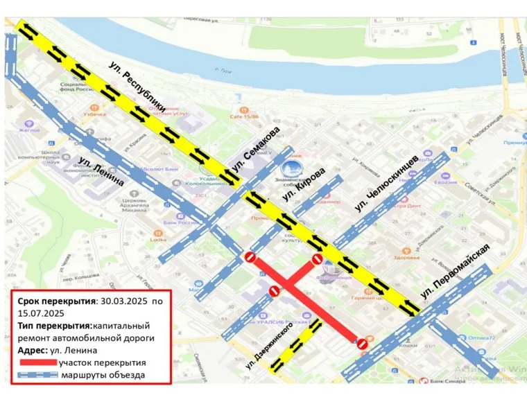 Ранее из-за капительного ремонта на улице Ленина движение транспорта планировали организовать по улицам Республики от первомайской до Семакова. Изменения вступают в силу с 30 марта и продлятся до 15 июля.