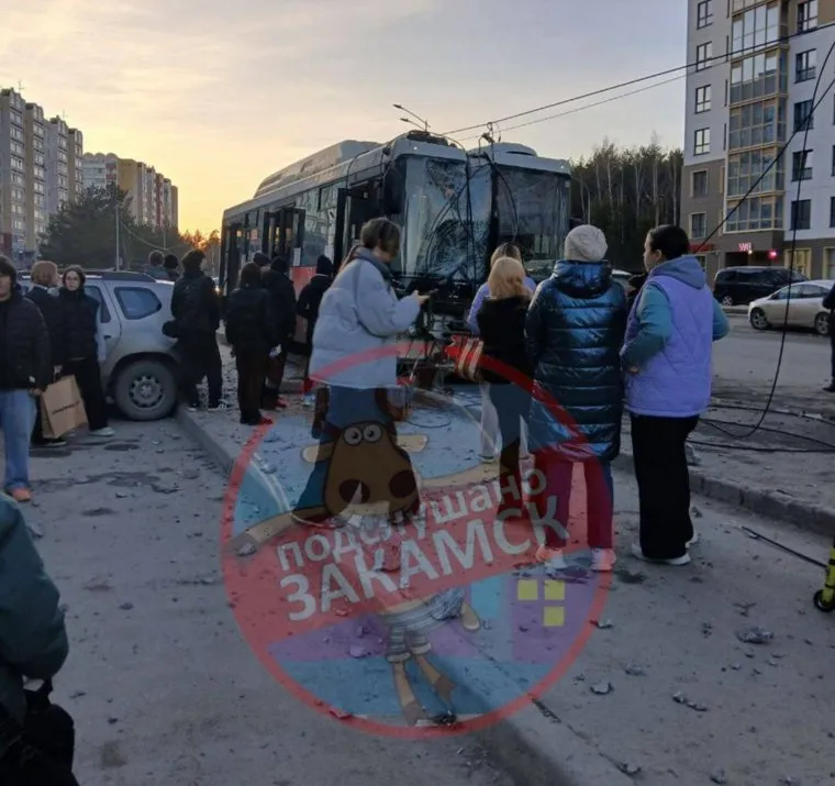 В Перми маршрутный автобус, угодивший в ДТП, оставил горожан без света. Фото