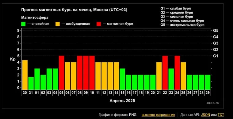 - 6 и 7 апреля — магнитосфера будет возбужденной, но без бурь
