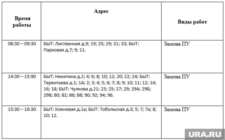 График отключений электроэнергии в Тобольске