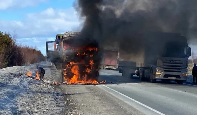 На трассе в районе Когалыма (ХМАО) 1 апреля загорелся грузовик. На помощь пришли ямальские пожарные, сообщили URA.RU источники в силовых структурах. Автомобиль сгорел, а водитель самостоятельно покинул машину.
