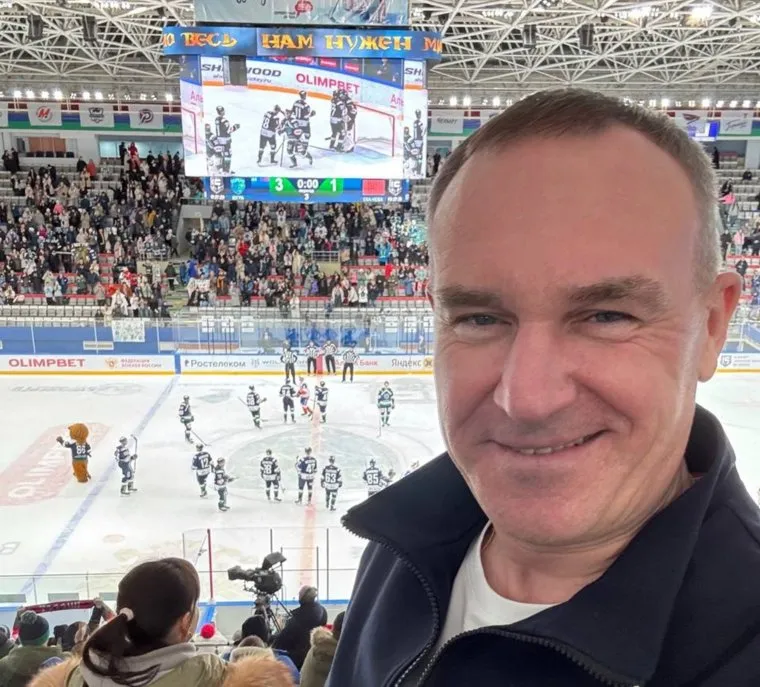 Губернатор Кухарук во время хоккейного матча в Ханты-Мансийске