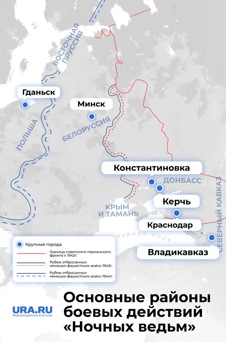 Карта районов, где проходили основные боевые действия «Ночных ведьм»
