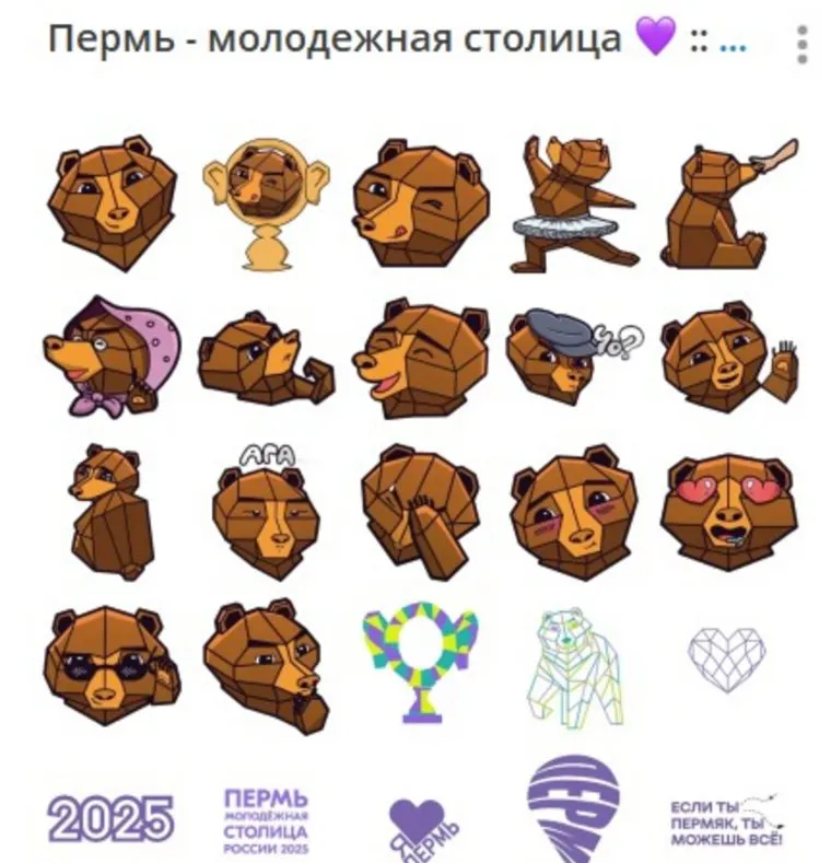 «В эмодзи-паке доступны алфавит и цифры в цветовой гамме молодежной столицы, текстовые символы, а также посикунчик, буква „П“, ротонда, пушка Мотовилихинских заводов и другие объекты Перми. В стикер-пак вошли изображения Пермяша — маскота пермской молодежи, символы краевого центра и трендовые надписи про молодежную столиц», — написано в правительственном telegram-канале «Пермский край».