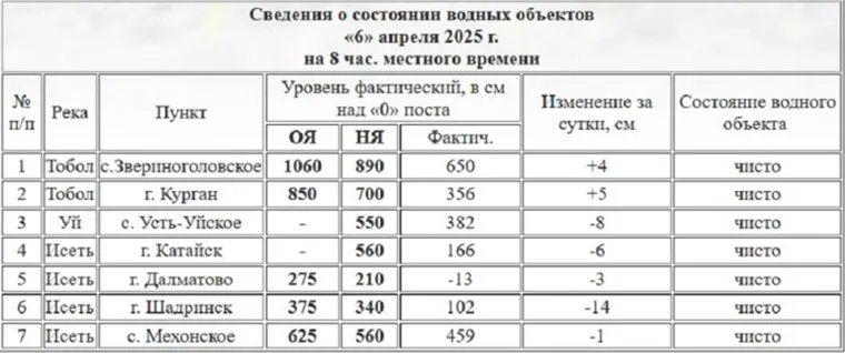 Уровень воды в реках Курганской области