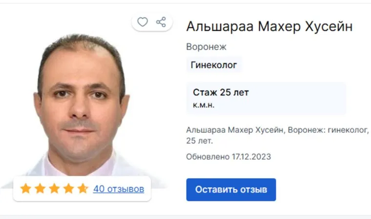 Пациенты высоко оценивают профессионализм Хусейн аш-Шараа как врача-гинеколога. Одна из пациенток поделилась своим опытом на сайте воронжской больницы: она обратилась к врачу с проблемами при беременности. С первого визита врач провел тщательный сбор анамнеза, учитывая историю болезней родственников. Процесс лечения занял некоторое время, но благодаря компетентным рекомендациям, которые отличались от стандартных методов поликлиники, пациентке удалось успешно выносить и родить ребенка.