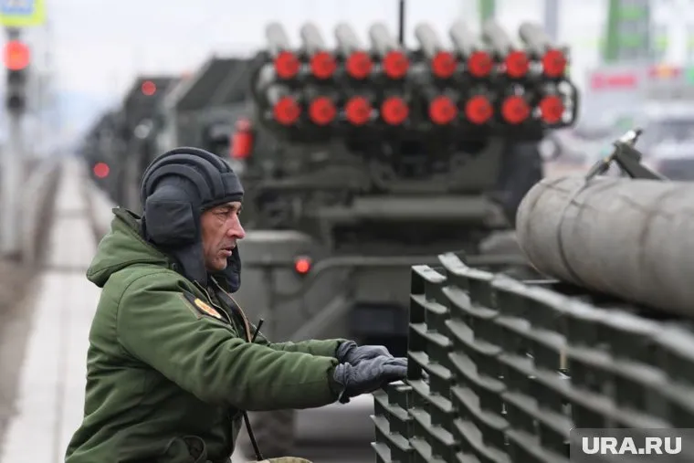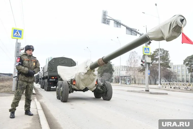 В Екатеринбурге утром 8 апреля по улицам Вторчермета проехали танки и десятки другой военной техники. Военнослужащие провели репетицию парада, посвященной 80-й годовщине Победы в Великой Отечественной войне, передает корреспондент URA.RU.