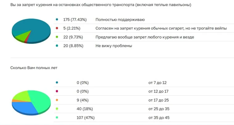 Ранее департамент региональной безопасности запустил опрос для изучения общественного мнения. Из 226 проголосовавших на сегодняшний день, больнинсво опрошенных высказалось за запрет курения. Голосование продлится до 24 апреля.