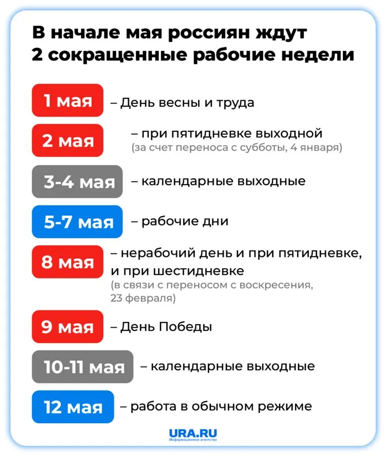 Майские праздники внесут изменения в график пенсионных выплат. В этом году нерабочие дни продлятся с 1 по 4 мая и с 8 по 11 мая. Пенсионеры, обычно получающие выплаты в начале месяца, в апреле получат сразу две пенсии — обычную за апрель и досрочную за май. Все выплаты, даты которых приходятся на праздничные дни, будут перечислены заранее — в конце апреля. Стандартный график выплат возобновится только после 12 мая.