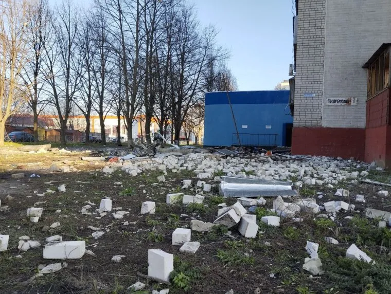 Последствия удара по жилому дому в Курске на улице Веспремской