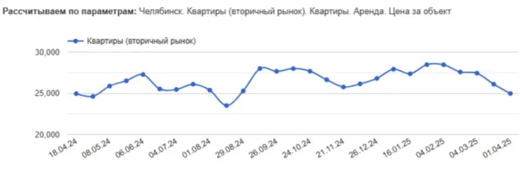 В Челябинске с 4 февраля по 15 апреля 2025 года цены на аренду квартир снизились на 15%. Сейчас жилье сдается в аренду в среднем за 24 тысячи рублей, сообщается на сайте о недвижимости.