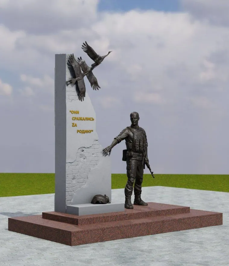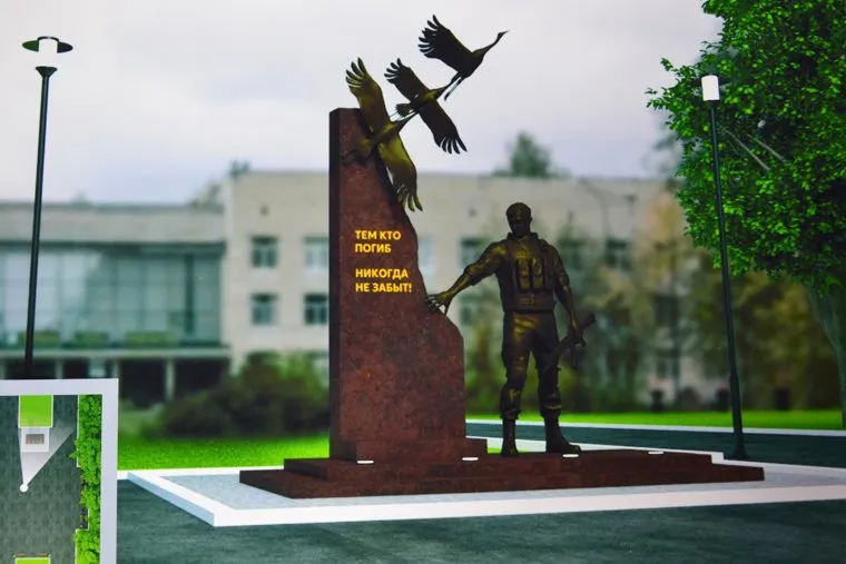 «Очередная встреча со скульптором. Илья Галиулин поясняет концепцию монумента — Герой отдает дань памяти павшим товарищам. В основе композиции — солдат на постаменте и стела с парящими журавлями. С учетом мнений участников СВО, их родственников, сотрудников силовых структур, ветеранов доработали фигуру бойца», — написал Казаченко в Telegram.