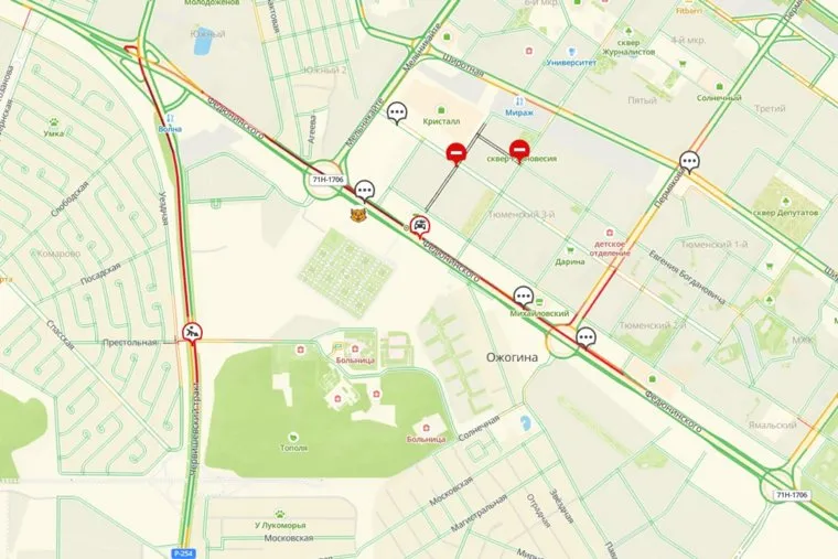 «Пробки в Тюмени. Червишевский тракт: 2,2 километра. Улица Федюнинского: 3,3 километра», — следует из данных сервиса.