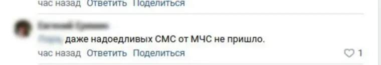 «Даже надоедливых СМС от МЧС не пришло», — пишут жители в комментариях в социальной сети ВКонтакте. Некоторые получили оповещения только в 10 часов утра, хотя очевидцы слышали первые взрывы еще в 07:00-08:00 часов утра по московскому времени. По официальной информации Минобороны РФ, атака началась в 08:00.