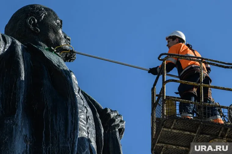 На главной площади Екатеринбурга помыли памятник Ленину. Фото, видео