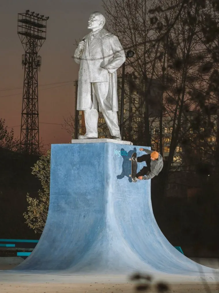 Под Екатеринбургом из памятника Ленину сделали рампу для скейтбордистов. Фото, видео