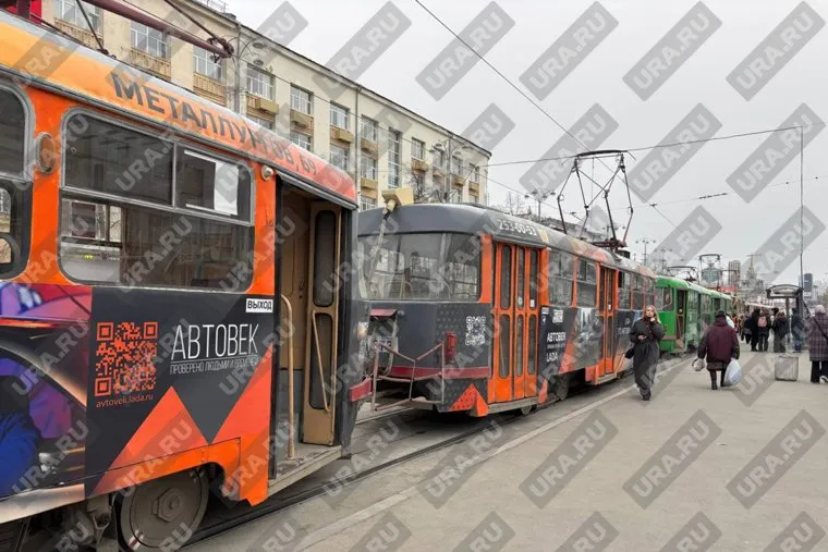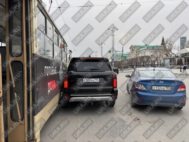 В центре Екатеринбурга встало движение трамваев из-за ДТП с внедорожником. Фото, видео