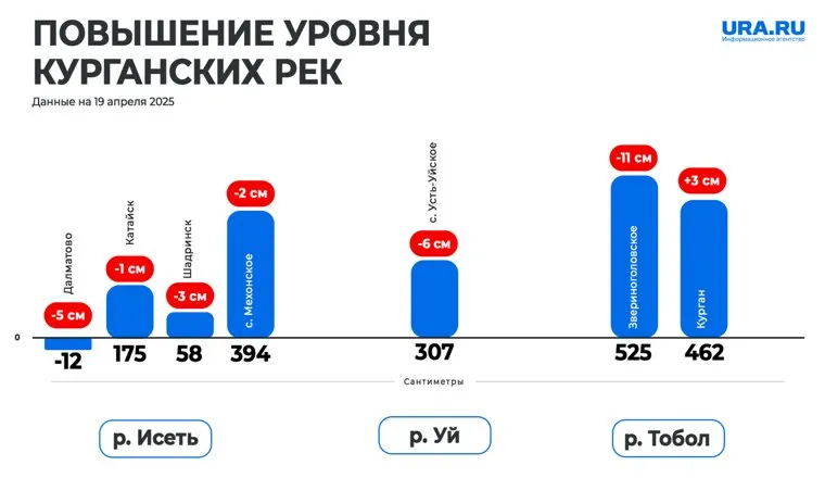 Уровень рек в Курганской области 19 апреля 2025 года