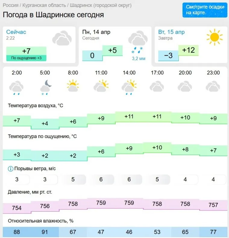 В Шадринске рабочая неделя начнется с сырой погоды. В понедельник в городе обещают снег с дождем. Об этом говорится в прогнозе Gismeteo.