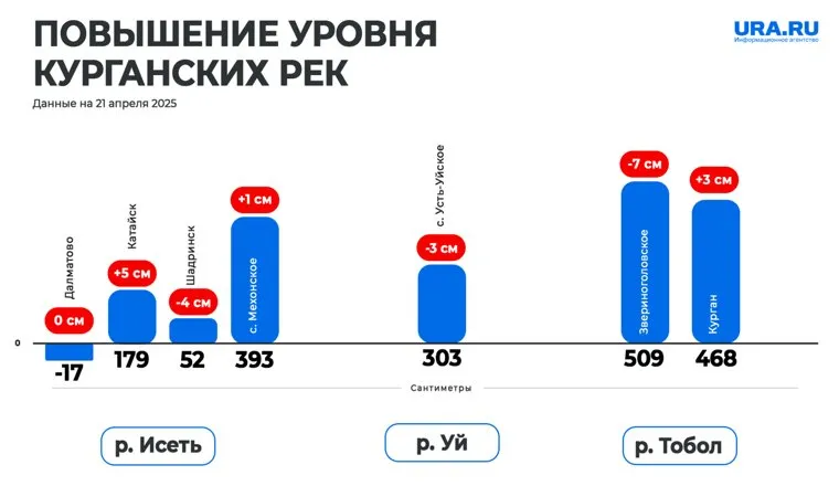 В Курганской области наблюдается небольшой подъем уровня рек. Инфографика