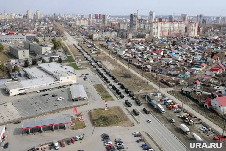 Танки Т-34, Т-72БЗ, ракетные комплексы С-400 «Триумф», БРК «Бастион», БТР-40, грузовые машины Studebaker, мотоциклы МВ-650М и бронеавтомобили периода Второй мировой войны БА-64 проехали по улицам Новосибирской и Дорожной. Колонну техники провожают военная полиция и Госавтоинспекция.