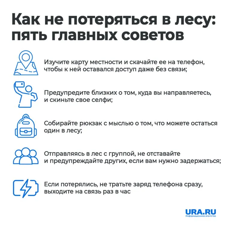 Перед тем, как отправиться в лес, лучше предупредить друзей или близких знакомых, а также сообщить им примерное место и время, когда вы собираетесь выйти на связь. «Обязательно сделайте селфи себя и своей компании, с которой вы отправляетесь в лес. Селфи нужно скинуть родным, чтобы они знали, во что вы были одеты», — подчеркнул эксперт по выживанию.