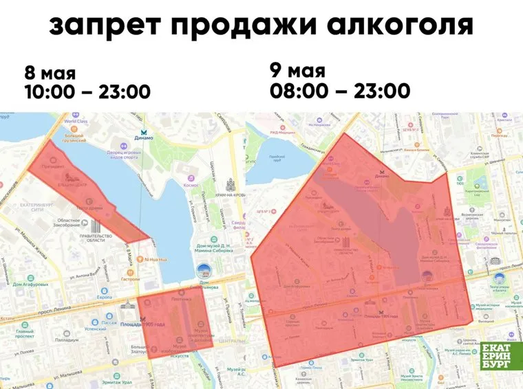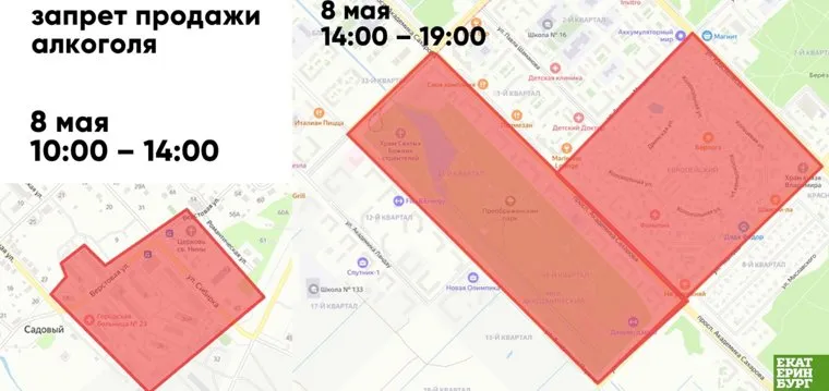 В Екатеринбурге запретят продажу алкоголя в майские праздники. Карта
