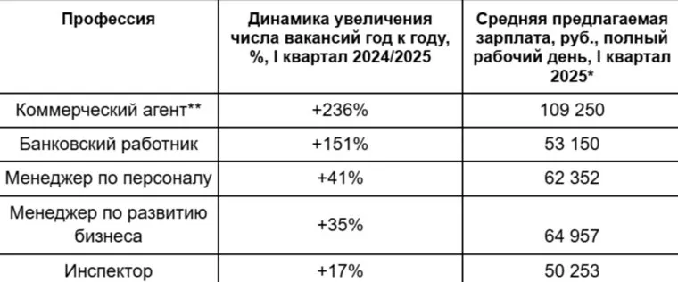 «В первом квартале 2025 года наибольший прирост числа вакансий в Челябинской области наблюдается для коммерческих агентов — спрос на этих специалистов вырос более чем в 3,4 раза, на 236%, а средние предлагаемые зарплаты достигли 109 250 рублей в месяц», — сообщили в пресс-службе.