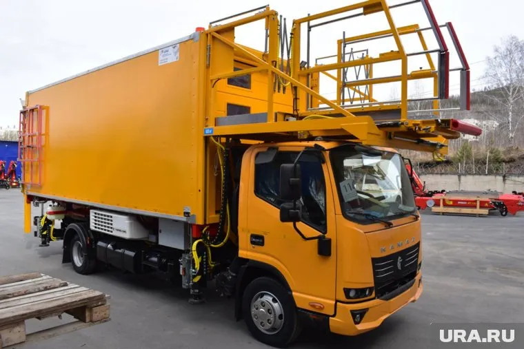 «Изготовили для аэропорта в Жуковском под Москвой автолифт. Спецтехника используется для разгрузки и загрузки в самолет тележек с бортовым питанием», — рассказали URA.RU на заводе.