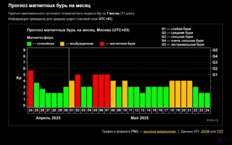 Прогноз магнитных бурь на конец апреля-начало мая 2025