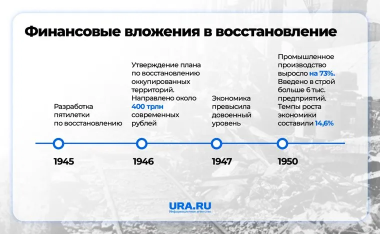 На восстановление промышленности, транспорта и связи потратили около 370 трлн современных рублей*