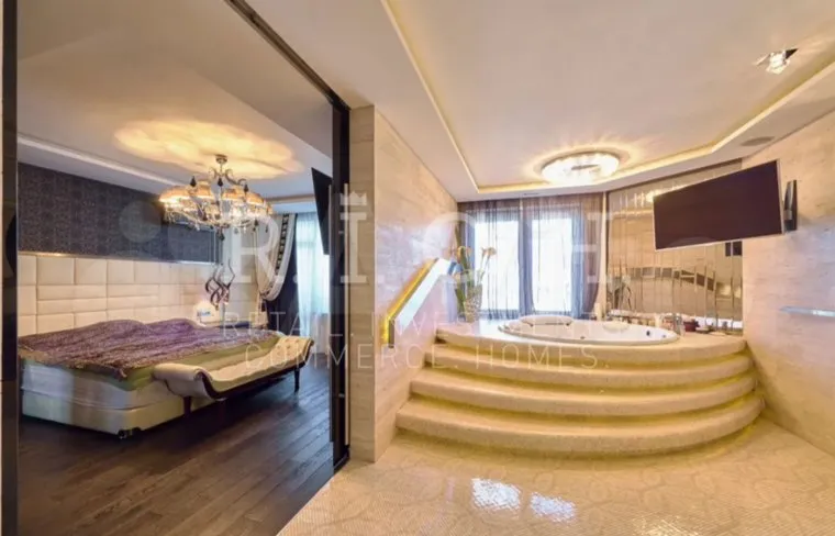 Также автор объявления отмечает, что в квартире выполнен дизайнерский ремонт с использованием натуральных материалов: это итальянский паркет, панели из шпона и кожи, оникс, травертин и гранит. Для дополнительного комфорта смонтирована система приточной вентиляции с фильтром. Дом расположен на закрытой территории с круглосуточным видеонаблюдением и подземным паркингом.
