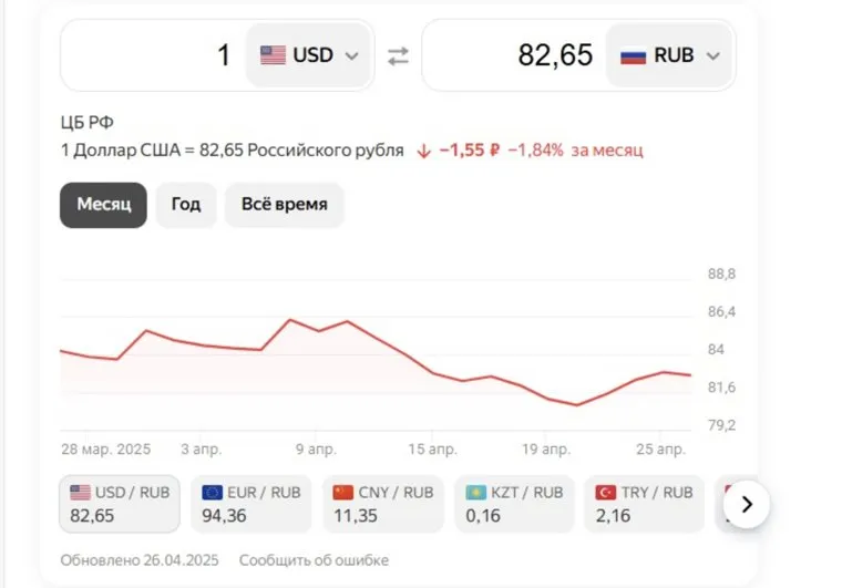 Рубль может столкнуться с резким падением на майских праздниках 2025 года из-за снижения ликвидности и ряда внешних факторов. Такой прогноз озвучил аналитик Владислав Антонов в беседе с агентством «Прайм». С 29 апреля по 2 мая ожидается широкое колебание курса для доллара — в диапазоне 80–89,5 рубля.