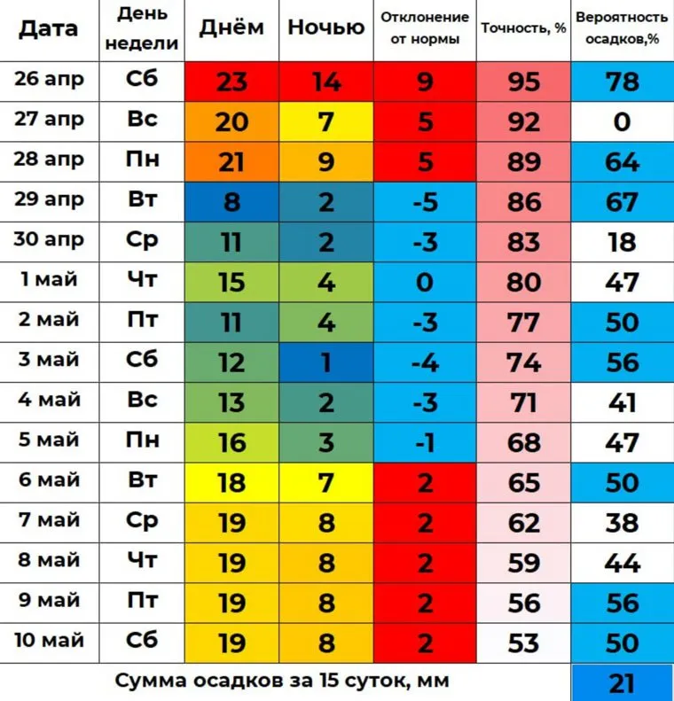 В конце апреля - начале мая температура воздуха будет ниже нормы