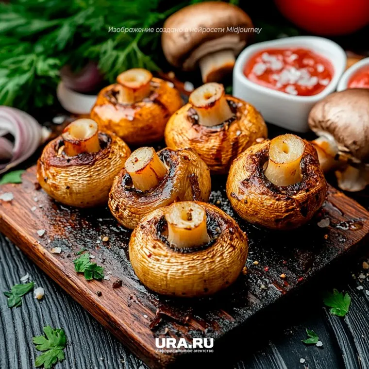 Грибы на гриле получается вкусными и сочными