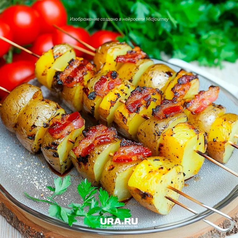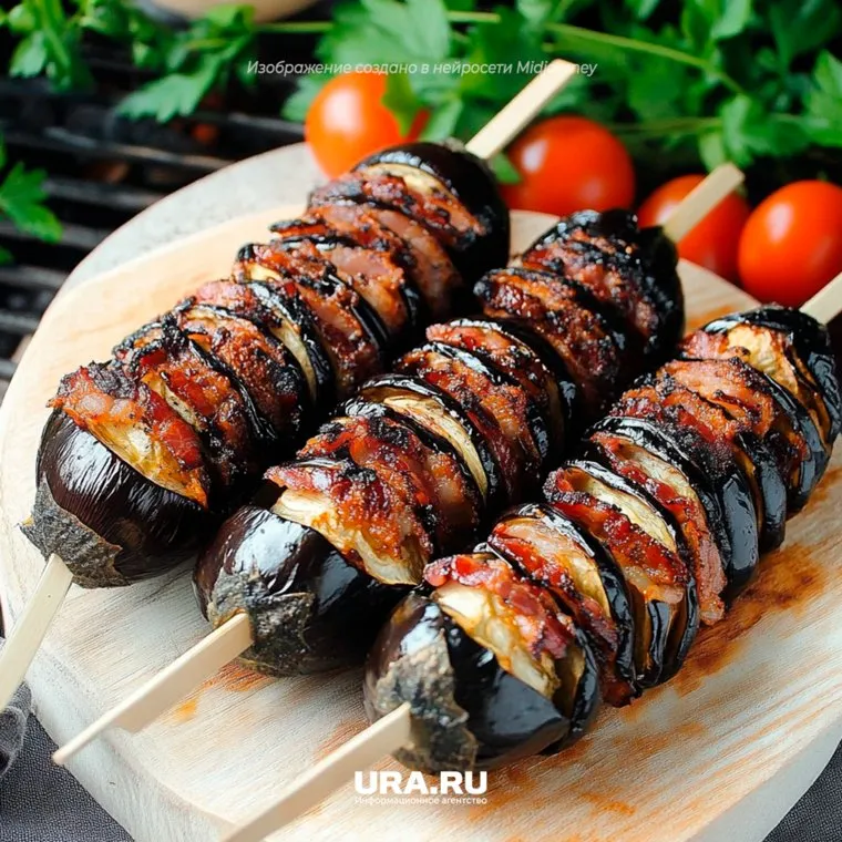 Баклажан — самый популярный овощ для приготовления блюд на мангале. С беконом это блюда становится сочным.