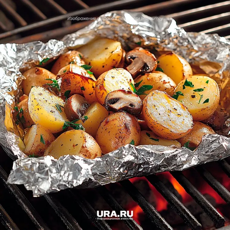Картошка с грибами, в фольге на мангале