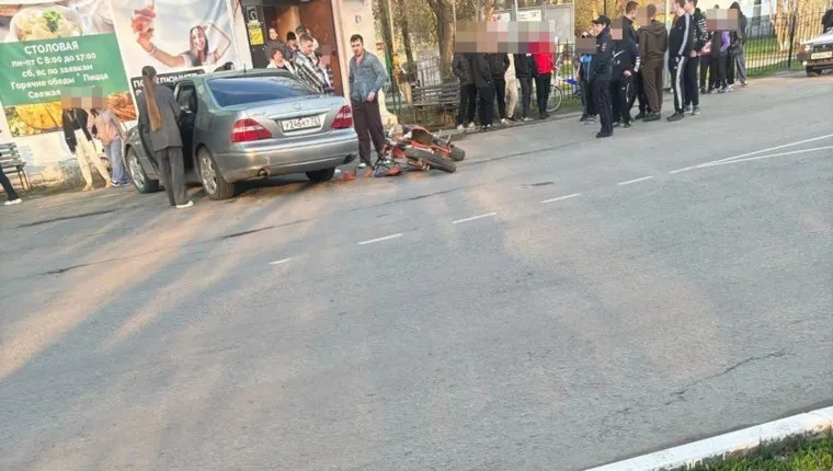 В селе Белозерском (Курганская область) произошло дорожно-транспортное происшествие — молодой мотогонщик, управляя питбайком, не справился с управлением на повороте. Его занесло, и он врезался в припаркованный автомобиль марки Lexus. Об этом сообщается в социальных сетях.
