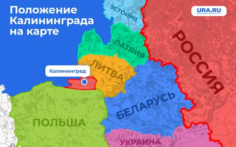 Калининград окружен странами НАТО. С одной стороны у него — Польша, с другой — Прибалтика в лице Литвы, Латвии и Эстонии. Расстояние от Калининграда до польской границы — 35 км, до литовской — 70 км. При этом от России Калининград отделяет порядка 800 километров.