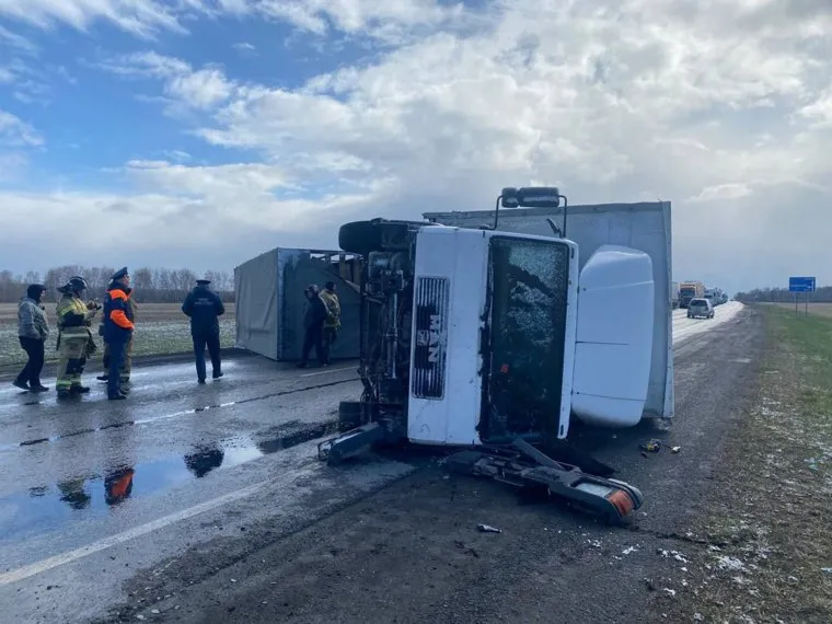 Шквальный ветер перевернул фуру на тюменской трассе. Фото